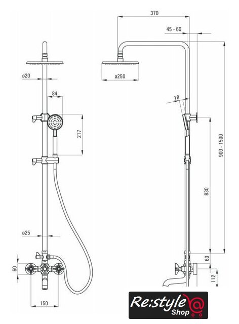 | Диаметр (ширина) верхнего душа | 250 мм |