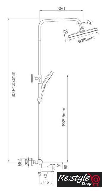 | Комплектация | верхний душ, штанга, ручной душ (лейка), держатель лейки, шланг, смеситель, излив для ванны |