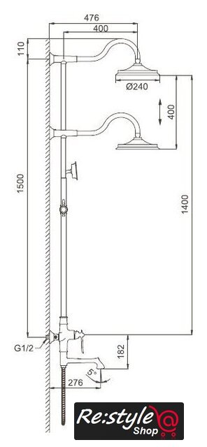 | Вылет верхнего душа | 476 мм |