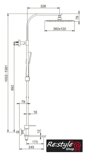 | Комплектация | верхний душ, штанга, ручной душ (лейка), держатель лейки, шланг, смеситель, излив для ванны |