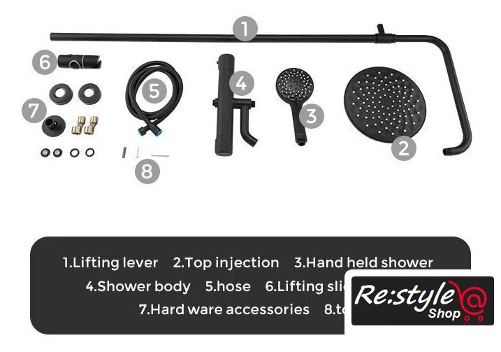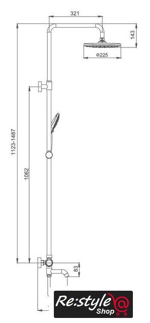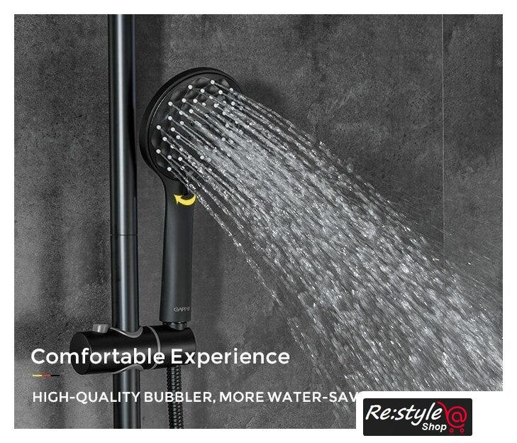 | Комплектация | верхний душ, штанга, ручной душ (лейка), держатель лейки, шланг, смеситель, излив для ванны |