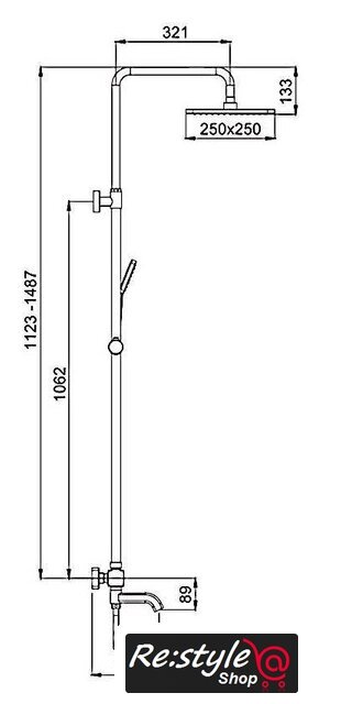 | Комплектация | верхний душ, штанга, ручной душ (лейка), держатель лейки, шланг, смеситель, излив для ванны |