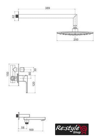 | Диаметр (ширина) верхнего душа | 250 мм |