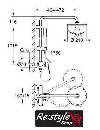 | Вылет верхнего душа | 472 мм |