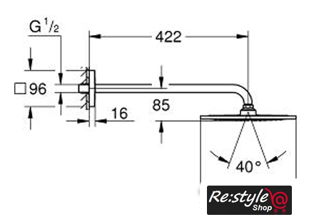 | Вылет верхнего душа | 422 мм |