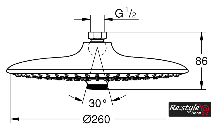 | Диаметр (ширина) верхнего душа | 260 мм |