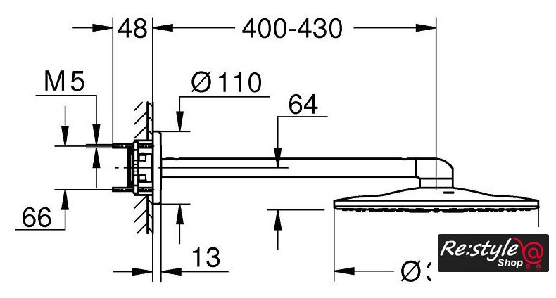 | Вылет верхнего душа | 400 мм |