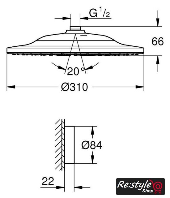 | Диаметр (ширина) верхнего душа | 310 мм |