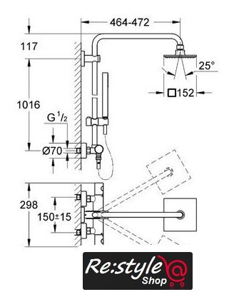 | Диаметр (ширина) верхнего душа | 152 мм |