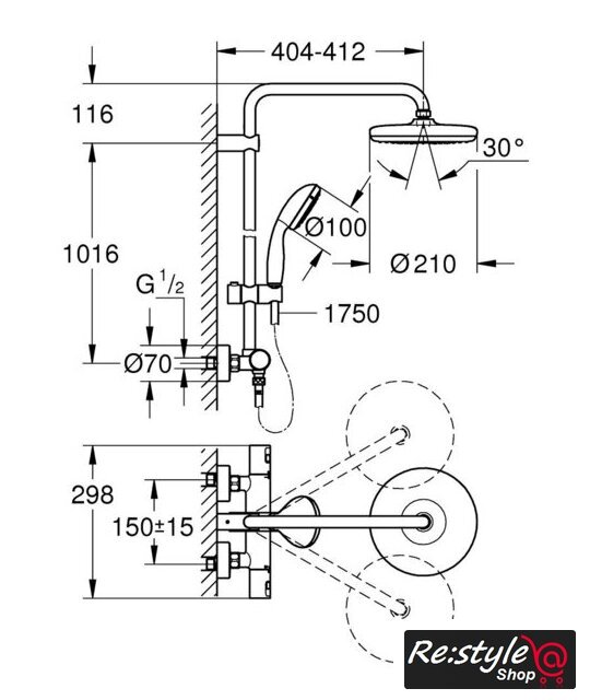 | Диаметр (ширина) верхнего душа | 210 мм |