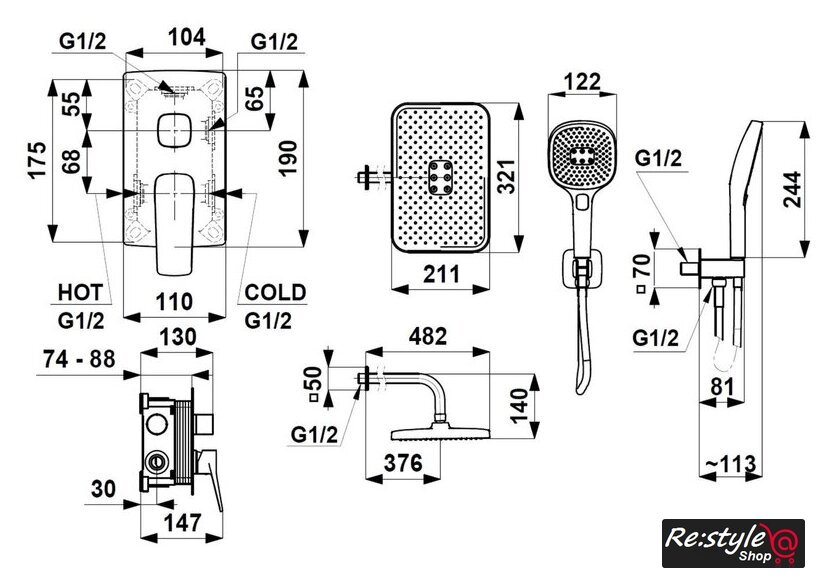 | Тип | душевая система (с верхним душем) |