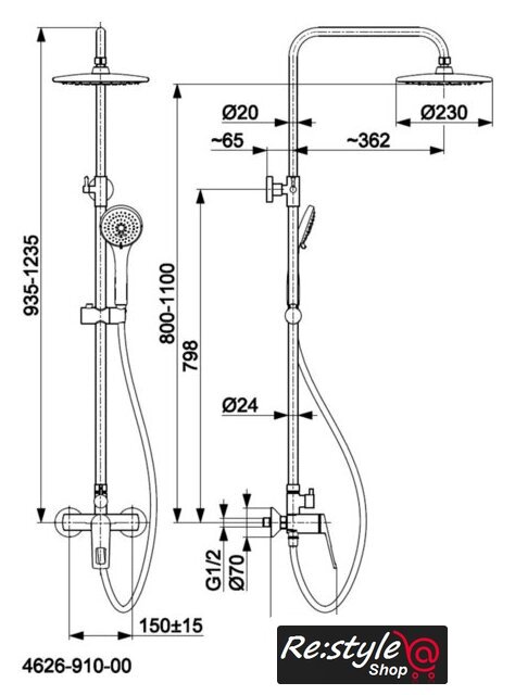 | Диаметр (ширина) верхнего душа | 230 мм |
