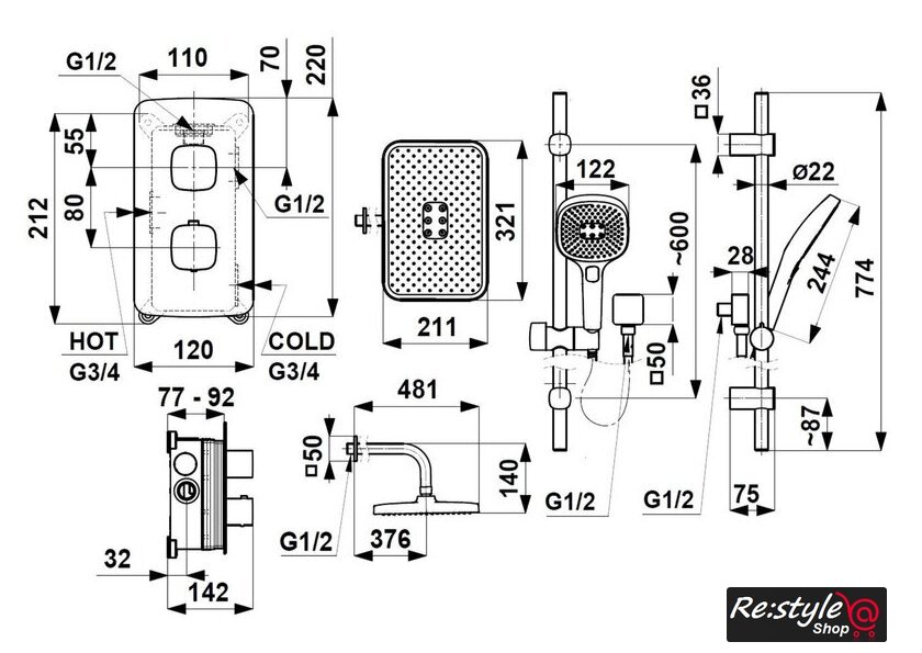 | Тип | душевая система (с верхним душем) |