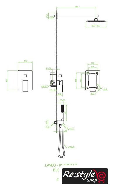 | Комплектация | верхний душ, ручной душ (лейка), держатель лейки, шланг, смеситель |
