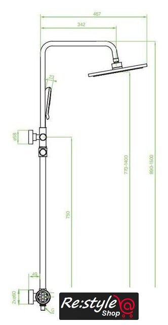 | Вылет верхнего душа | 342 мм |