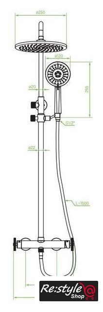 | Диаметр (ширина) верхнего душа | 250 мм |