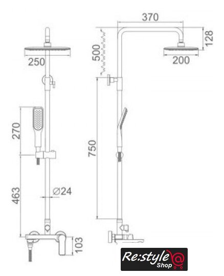| Комплектация | верхний душ, штанга, ручной душ (лейка), держатель лейки, шланг, смеситель, излив для ванны |