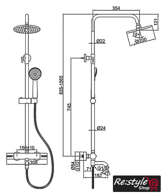 | Комплектация | верхний душ, штанга, ручной душ (лейка), держатель лейки, шланг, смеситель, излив для ванны |