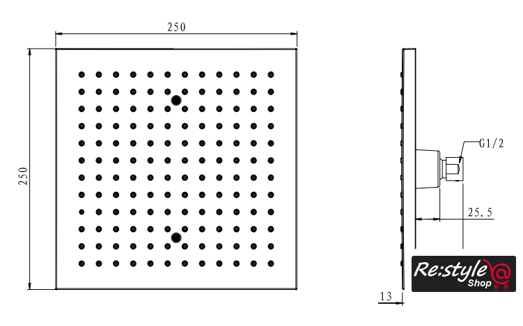 | Диаметр (ширина) верхнего душа | 250 мм |