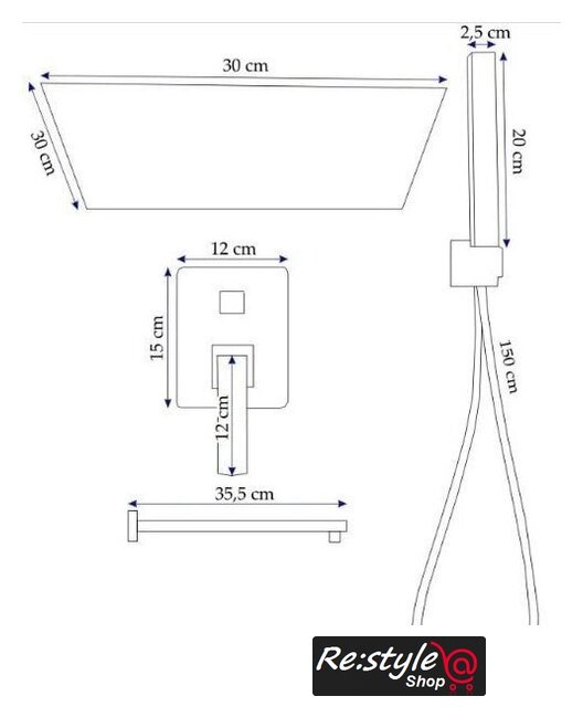 | Комплектация | верхний душ, ручной душ (лейка), держатель лейки, шланг, смеситель |