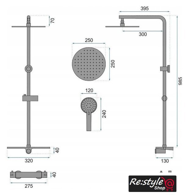 | Комплектация | верхний душ, штанга, ручной душ (лейка), держатель лейки, шланг, смеситель, полочка |