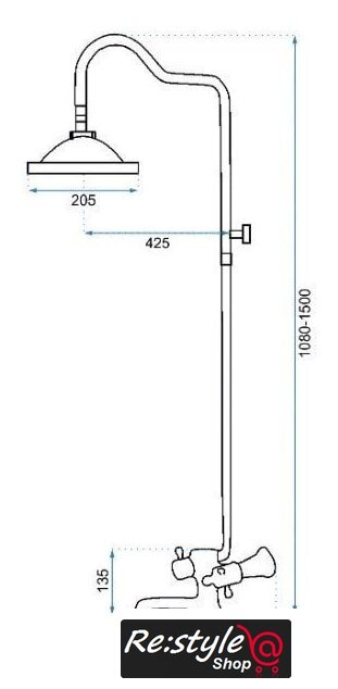 | Вылет верхнего душа | 425 мм |