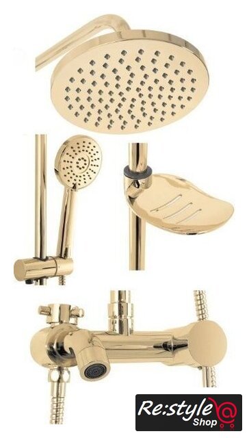| Комплектация | верхний душ, штанга, ручной душ (лейка), держатель лейки, шланг, смеситель, излив для ванны, мыльница или держатель для мыла |