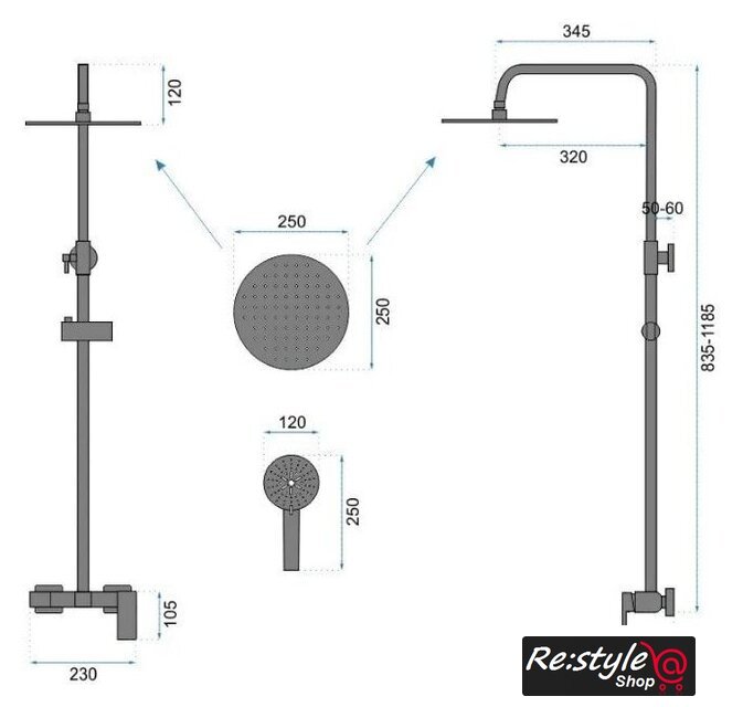 | Комплектация | верхний душ, штанга, ручной душ (лейка), держатель лейки, шланг, смеситель, излив для ванны |