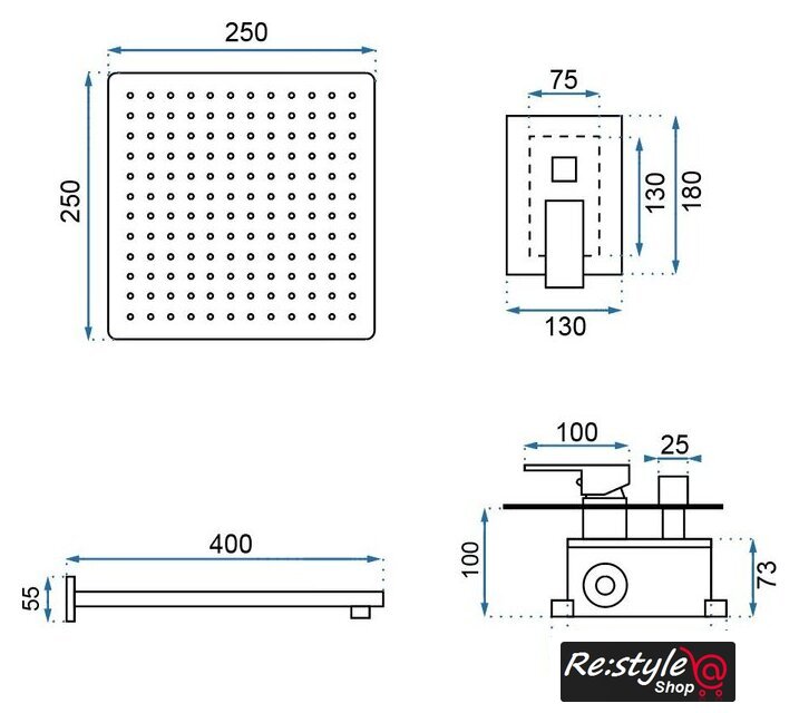 | Диаметр (ширина) верхнего душа | 250 мм |