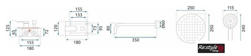 | Комплектация | верхний душ, ручной душ (лейка), держатель лейки, шланг, смеситель |
