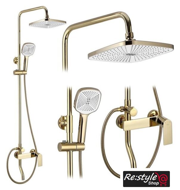 | Комплектация | верхний душ, ручной душ (лейка), держатель лейки, шланг, смеситель, излив для ванны |