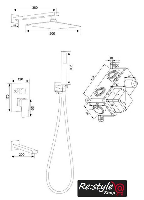 | Диаметр (ширина) верхнего душа | 200 мм |