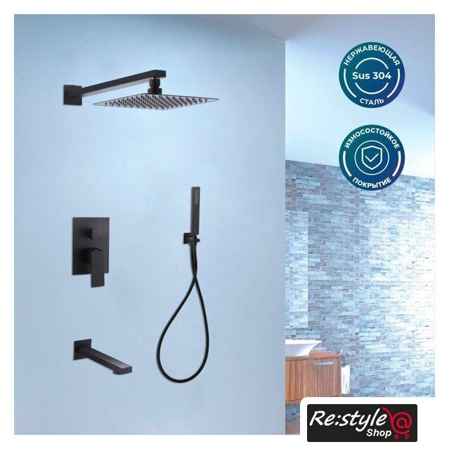 | Комплектация | верхний душ, ручной душ (лейка), держатель лейки, шланг, смеситель |