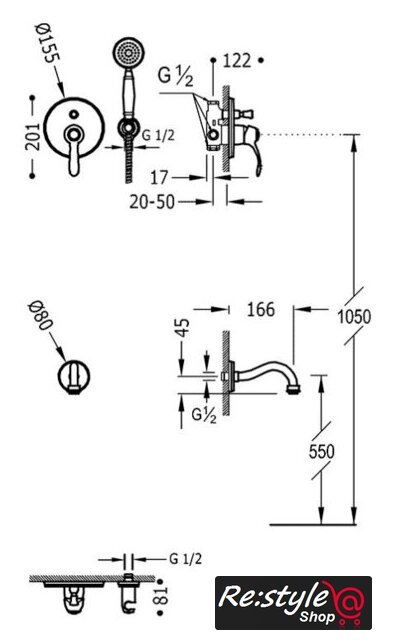 | Комплектация | ручной душ (лейка), держатель лейки, шланг, смеситель, излив для ванны |