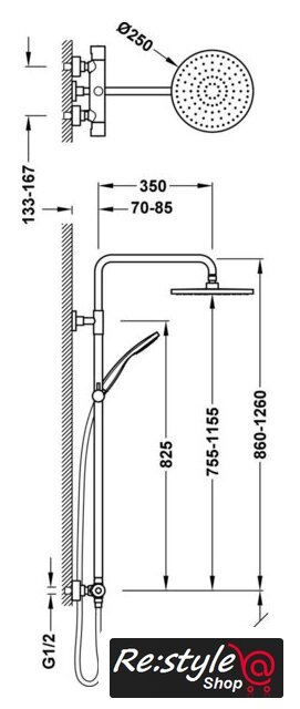 | Диаметр (ширина) верхнего душа | 250 мм |