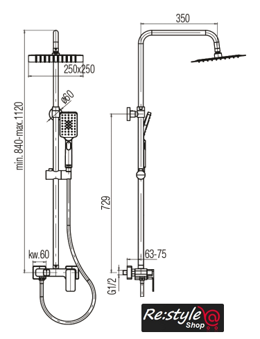 | Форма верхнего душа | прямоугольная (квадратная 250x250) |