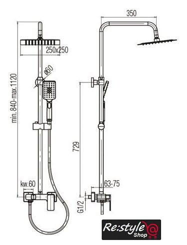 | Диаметр (ширина) верхнего душа | 250 мм |