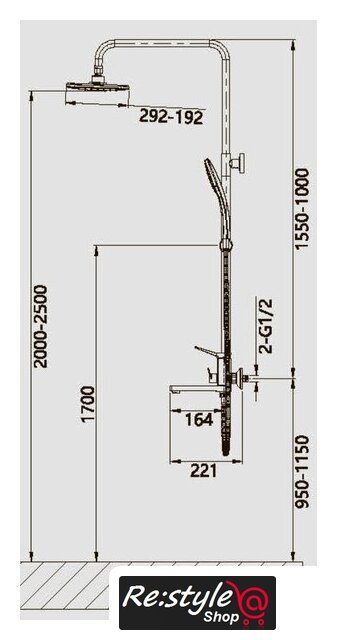 | Комплектация | верхний душ, штанга, ручной душ (лейка), держатель лейки, шланг, смеситель, излив для ванны |