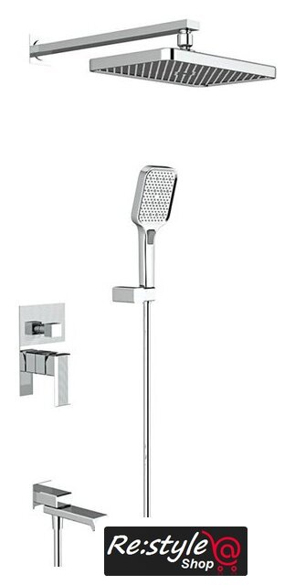 | Комплектация | верхний душ, ручной душ (лейка), держатель лейки, шланг, смеситель, излив для ванны |