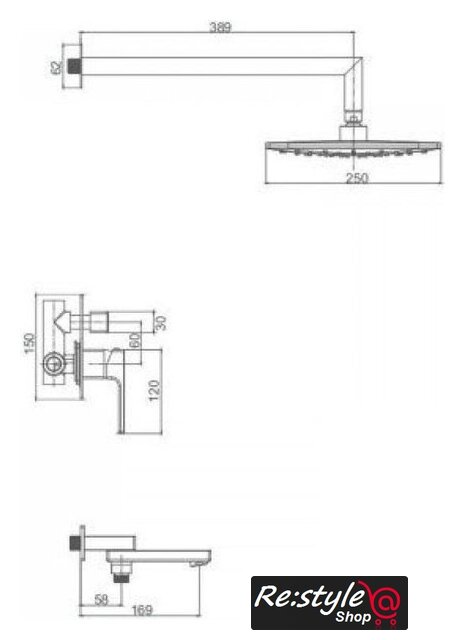| Диаметр (ширина) верхнего душа | 250 мм |
