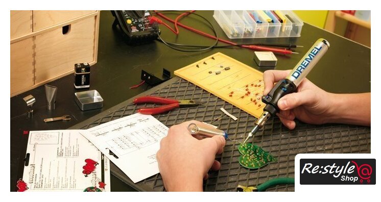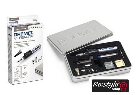 | Комплектация | Dremel VersaTipПаяльная насадкаРежущий ножНож для горячей резкиПлоская широкая нагревательная насадкаОтражательНасадка для горячего воздухаПаяльная насадка с голубым остриемГубка + коробочкаИнструкция по эксплуатацииЖестяной чемодан для хранения |