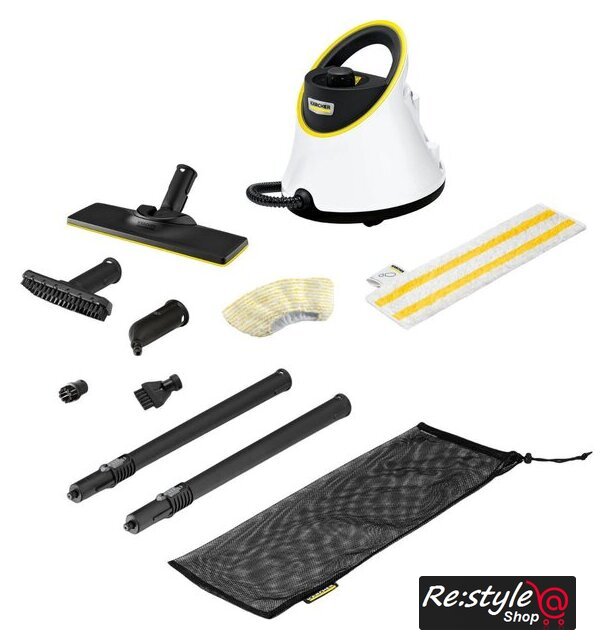 Дополнительные насадки и приспособления | - Сумка для принадлежностей- Универсальная салфетка для пола EasyFix- Обтяжка из микроволокна для ручной насадки- Точечное сопло- Ручная насадка- Круглая щетка, черная- Щетка для очистки швов- Насадка для пола: EasyFix- Удлинительные трубки (2 х 0,5 м) |