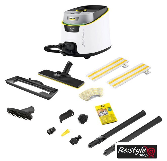 Дополнительные насадки и приспособления | - Универсальная салфетка для пола EasyFix: 2 шт.- Обтяжка из микроволокна для ручной насадки: 1 шт.- Порошок антинакипина: 3 шт.- Точечное сопло- Ручная насадка- Мощное сопло- Круглая щетка, черная: 1 шт.- Круглая щетка, большая- Щетка для очистки швов- Насадка для пола: EasyFix- Удлинительные трубки (2 х 0,5 м)- Насадка для очистки ковров |