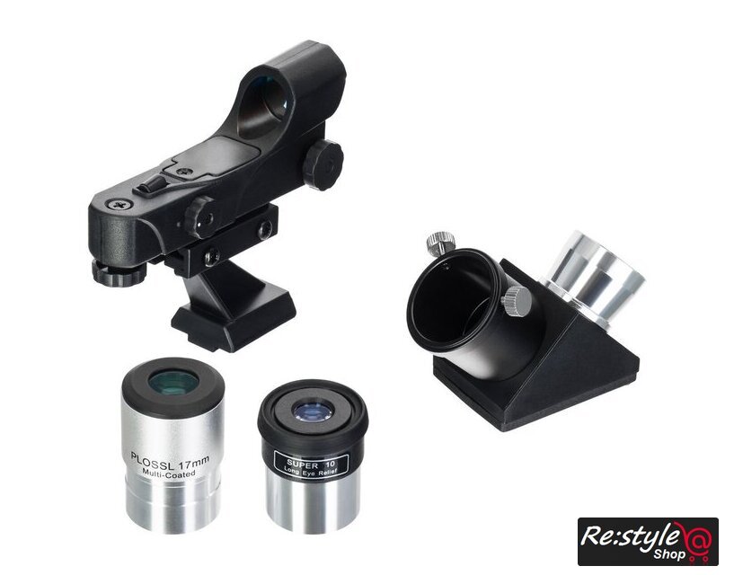 | Комплект поставки | Труба телескопаОкуляр SUPER 10 мм, 1,25"Окуляр PL 17 мм, 1,25"Искатель с красной точкой (Red Dot)Диагональное зеркало 90°Экваториальная монтировка EQ2ПротивовесШтанга противовесаРучки тонких движенийАлюминиевая треногаЛоток для аксессуаровИнструкция по эксплуатации и гарантийный талон |