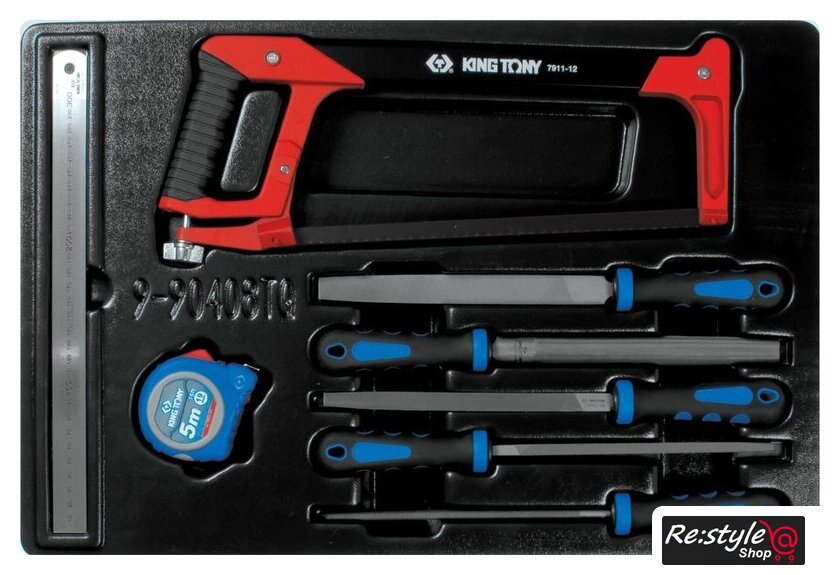 | Комплектация | Напильник прямоугольного сечения (75102-08G) – 200 мм; Напильник полукруглого сечения (75202-08G) – 200 мм; Напильник круглого сечения (75302-08G) – 200 мм; Напильник треугольного сечения (75402-08G) – 200 мм; Напильник квадратного сечения (75502-08G) – 200 мм; Линейка металлическая (79061-12) – 300 мм; Ножовка по металлу (7911-12) – 305 мм; Рулетка, магнитный крюк (79094-05C) – 5 метров |