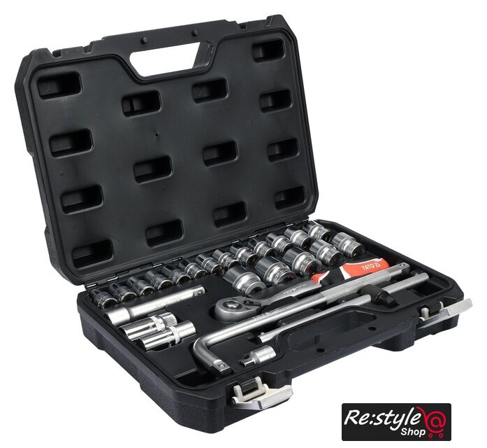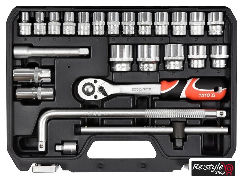 | Комплектация | - Головки 1/2": 10, 11, 12, 13, 14, 15, 16, 17, 18, 19, 20, 21, 22, 23, 24 мм (L=38 мм); 27, 30, 32 мм (L=42 мм);- Удлинитель 1/2", 127 мм;- Головки свечные 1/2": 16, 21 мм;- Вороток 1/2", 255 мм;- Трещотка 72Т, 1/2", 255 мм;- Адаптер 1/2", 317 мм;- Переходник 1/2"(F)x3/8"(M) |