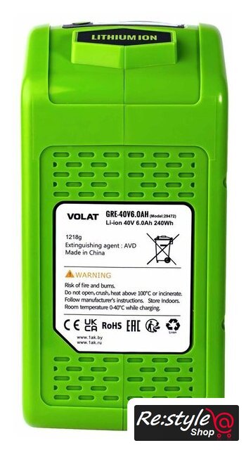 | Номинальное напряжение аккумулятора | 40 В |