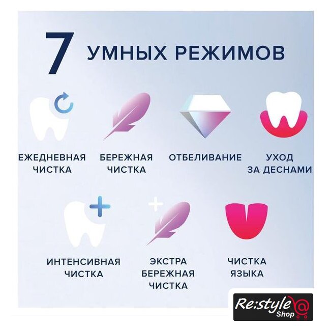 Дополнительное действие | мягкая чистка, глубокая чистка, отбеливание, массаж, чистка языка |