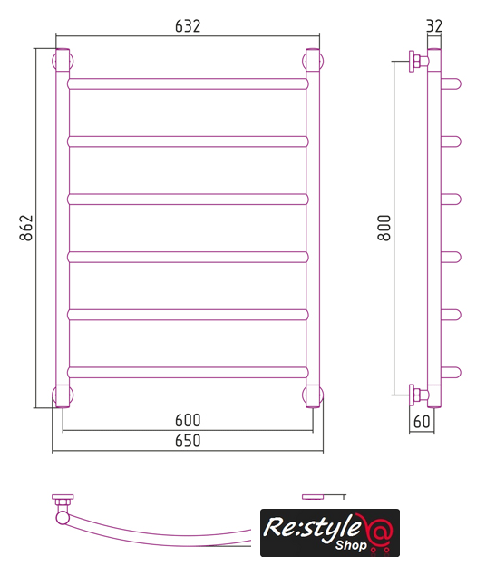 | Посадочное (межосевое) расстояние | 600 мм (- при нижнем подключении, при диагональном и вертикальном - 800 мм) |
