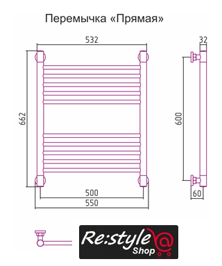 водяной, "лесенка", подключение боковое/нижнее/диагональное (500 мм, 1/2"), 66.2x55 см, цвет: полированная сталь